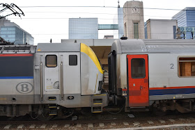 My train has arrived to Brussels Nord, one of the three major stations in Brussels. The train on the photo is a similar one to the one I took, powered by SNCB Class 18 locomotive and carrying M6 coaches.
